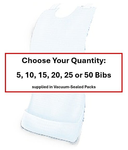 These BRAND NEW Adult Bibs are supplied in convenient smaller quantities of 5, 10, 15, 20, 25 or 50 Bibs